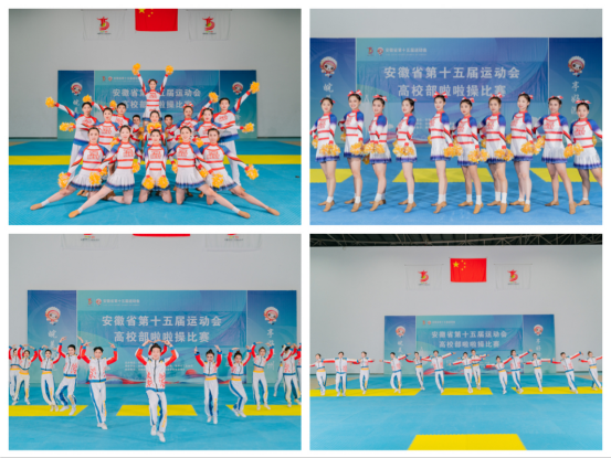 我校啦啦操和健美操在今年安徽省第十五届运动会上取得亮眼表现,啦啦操队获得二等奖一项,三等奖一项,健美操队获得三等奖五项。“我们团队为50人的规格,其中成员都是由指导老师在体育课上根据同学们的兴趣和实际表现选拔出来的,每周三、周日我们会在一块训练。”啦啦操队长张梦丹说道。许多荣誉的背后也也蕴含着诸多艰难,令张梦丹最为深刻的就是疫情时期受多种因素的限制,相对于其他高校训练时间较短,大家争分夺秒的利用暑假时间,在学校开始了一场集中封闭式训练。