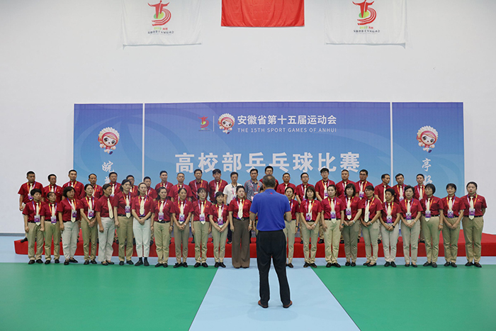 8月26日下午,安徽省第十五届运动会高校部乒乓球比赛组委会临时党支部在博鱼官方网页版_博鱼(中国)凤阳校区西区体育馆开展主题党课活动。主题党课由比赛仲裁、临时党支部书记秦纪强教授主讲,全体裁判员参加。