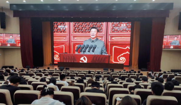 7月1日上午8时,庆祝中国共产党成立100周年大会在北京天安门广场隆重举行。信息与网络工程学院积极响应学校《关于组织师生员工收听收看习近平总书记在庆祝中国共产党成立100周年大会上重要讲话现场直播的通知》号召,早上7:50学院党政领导和全体师生党员赴尚行楼B418会议室、学院师生赴龙湖校区综合信息中心东辅楼二楼报告厅集中观看庆祝建党100周年大会实况活动。