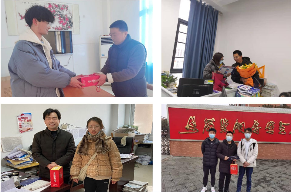 在活动中,我院学子重回母校拜访高中老师,在校张贴喜报,向母校报喜。学生向老师表达了感激之情,汇报进入大学后的变化和对未来规划,并赠送博鱼官方网页版_博鱼(中国)纪念品。老师对他们的变化表示欣慰,鼓励他们继续奋斗。他们还向老师的介绍了博鱼官方网页版_博鱼(中国)更名“大学”的计划、获批硕士学位授予单位、学校部分专业获批一本招生资格等相关情况,并诚挚的邀请老师到学院参观。
