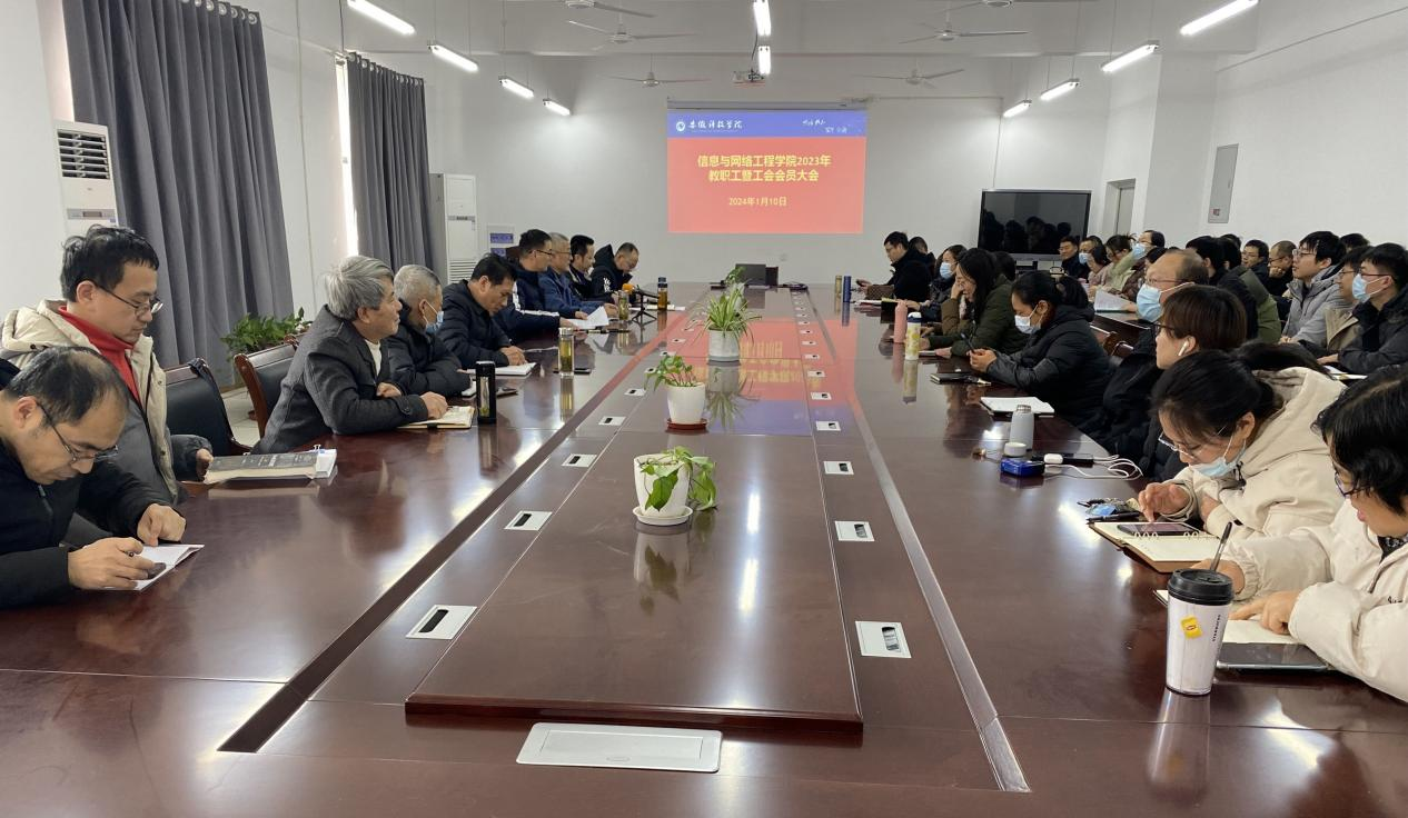 1月10日下午,信息与网络工程学院在尚行楼B418召开2023年教职工暨工会会员大会。学院党政领导以及全体教职工参加了会议,会议由院党委书记王振其主持。