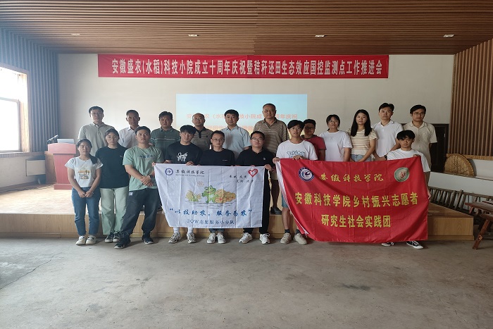为贯彻落实习近平总书记给中国农业大学科技小院学生们的重要回信精神,深入推进研究生教育产教深度融合,强化乡村振兴人才支撑,9月4日,安徽当涂水稻科技小院十周年庆典活动在安徽盛农农业集团有限公司会议室举行。当涂县农业农村局处长胡现荣,安徽盛农农业集团有限公司董事长夏金林,博鱼官方网页版_博鱼(中国)汪建飞、周毅及相关专家参加庆典活动。