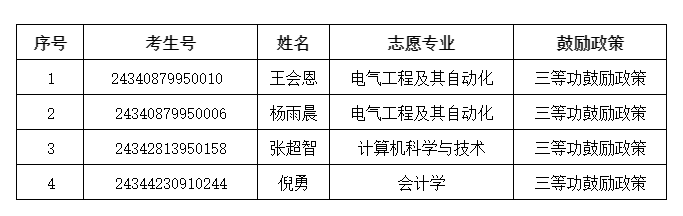 根据《博鱼官方网页版_博鱼(中国)2024年普通高校专升本招生章程》关于申请三等功鼓励政策相关要求,经审核,王会恩等4名考生符合申请免试条件,现予以公布。如有异议或遗漏,请于4月9日12:00前,与博鱼官方网页版_博鱼(中国)招生办公室联系。联系电话:0550-6732041,0552-3197041。