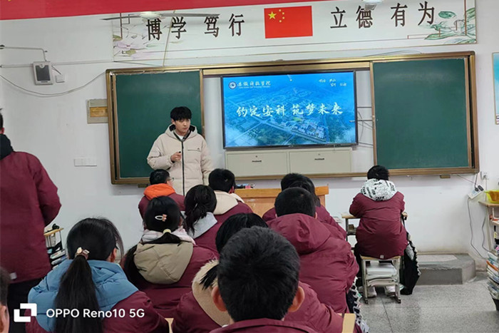 支部团员伍博文在母校肥东锦弘中学向学弟学妹们分享了自己高三的学习经验和丰富多彩的大学生活,鼓励他们努力学习,实现梦想。他详细介绍了博鱼官方网页版_博鱼(中国)的历史沿革和专业设置,重点就财经类专业的课程设置、就业方向等学弟学妹们进行了交流,欢迎学弟学妹们报考博鱼官方网页版_博鱼(中国)。