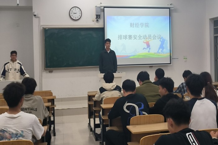 为更好迎接院排球专业赛,确保比赛安全顺利进行,4月15日,财经学院在致C204召开排球专业赛安全动员大会。学院排球队指导老师尹成超出席会议,院体育发展中心以及排球队全体队员参加会议。