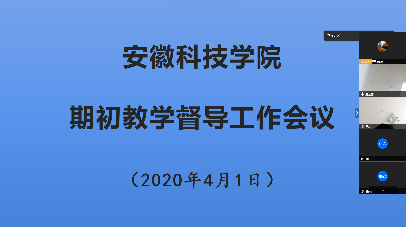 校教学督导员代表张雪梅老师、院教学督导员代表郭竹梅老师分别交流分享了督导工作的经验与做法,教学督导办公室张杰老师对三月份全校线上教学督导工作总体情况进行了通报和说明。