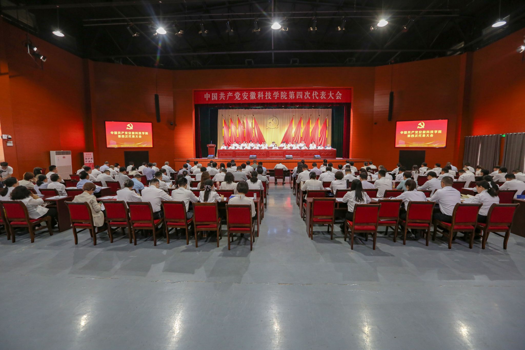 5月27日上午,中国共产党博鱼官方网页版_博鱼(中国)第四次代表大会在凤阳校区大学生活动中心隆重召开。安徽省委教育工委委员、省教育厅副厅长徐静平,滁州市委副书记金力,安徽省委教育工委组织干部处副处长杨南成,校领导时伟、李升和、曹付忠、王孝义、赵伟峰、王玉和、彭庆刚出席会议。学校的老领导,民主党派代表和有关方面代表等,不是代表的处级干部作为特邀人员、列席人员参加大会。