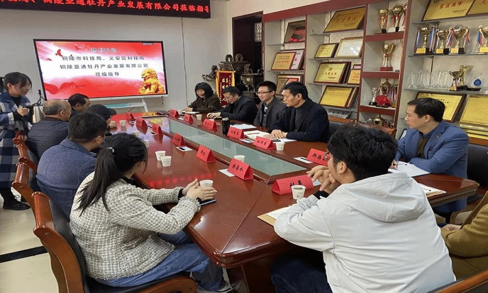 2022年11月 党委班子在学院会议室与铜陵市义安区科技局洽谈产学研合作