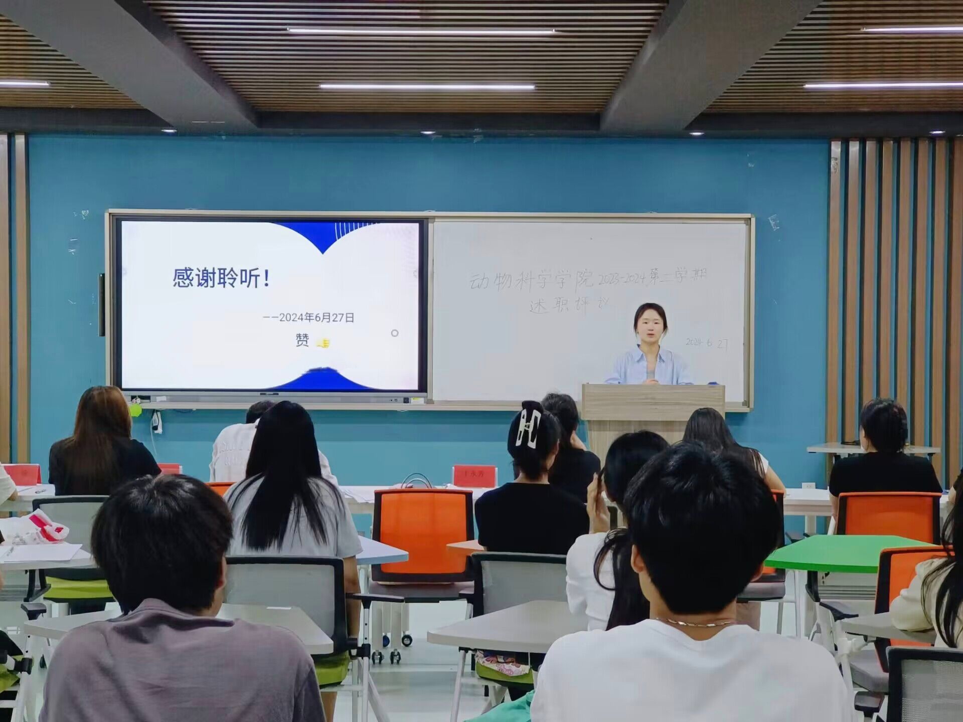 为了增强学生干部的责任意识、服务意识和大局意识,提高学生会成员履职能力,6月27日晚,动物科学学院学生会在求知楼B309召开学生会述职评议大会。学生会主席团成员、各部门负责人参与此次评议,辅导员王永芳老师,各年级学生代表担任评委,大会由动物医学232班徐莹莹主持。
