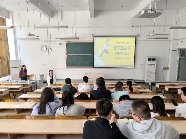 会上,王世琴从学校概况、学院概况、专业概况、招生政策、奖助体系、校园风貌六个方面出发,对学院历史沿革、内设机构、学科建设、师资力量、设备设施、科研成果、创新实践、专业发展历史、专业培养计划、统考招生流程、奖助学金体系等方面做了详细介绍。宣讲环节结束后,在场学生对初试复习方法、复试时间流程、奖助学金情况、学习生活环境等关心问题进行了咨询,闫宁对学生提出的问题进行了细致解答,并送上了贴心建议和殷切希望,勉励同学们坚定目标,制定计划,不懈努力,一举成功。