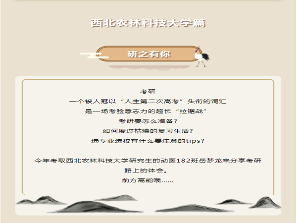 2022考研正缓缓落下帷幕,2023考研的主场已到来。为给学院2023考研学子提供更多择校、备考信息,动物科学学院于院易班开设考研经验分享专栏。