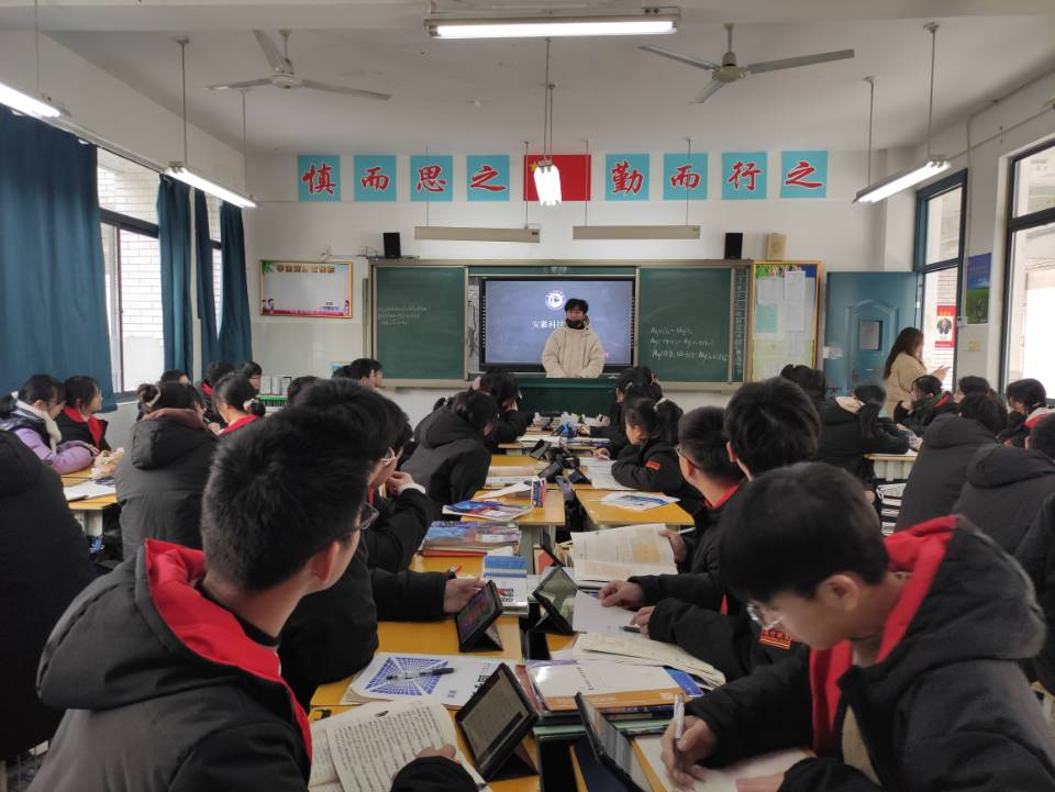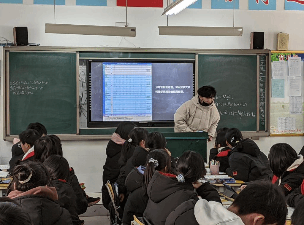 刘志伟团队首先拜访了语文老师王雪莲和英语老师宋梦琼,并与老师进行了交谈。交谈过程中,共同回忆了高中生活的点点滴滴。他向老师汇报了这几个月在大学生活和学习上的变化与成长,向老师展示了在学院参加活动时的照片等。并向老师详细介绍了博鱼官方网页版_博鱼(中国)的相关情况如学校条件、校园风景、师资水平、考研录取率等。合肥高升学校的年级主任、数学老师宋仔义,他听说团队此行的目的之后,热情地安排了刘志伟团队与高三学子进行互动交流。