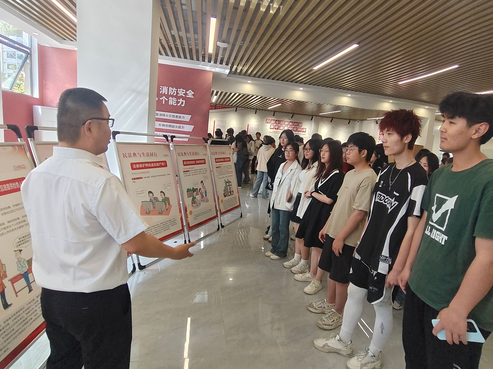 在辅导员李永鹏的带领与讲解下,工商管理23级同学们参观了法治工作站、民法典宣传展架、党史文化长廊等场地,学习了习近平法治思想、民法典知识、安全教育、征兵入伍等方面内容,熟悉了法律咨询服务流程。