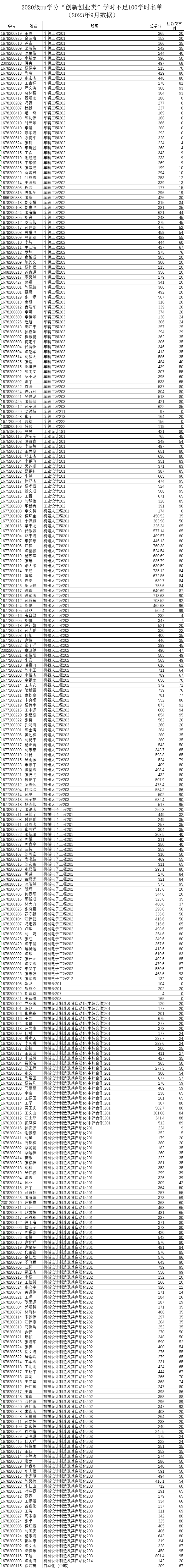 表4 2020级pu学时“创新创业类”不足100学时名单