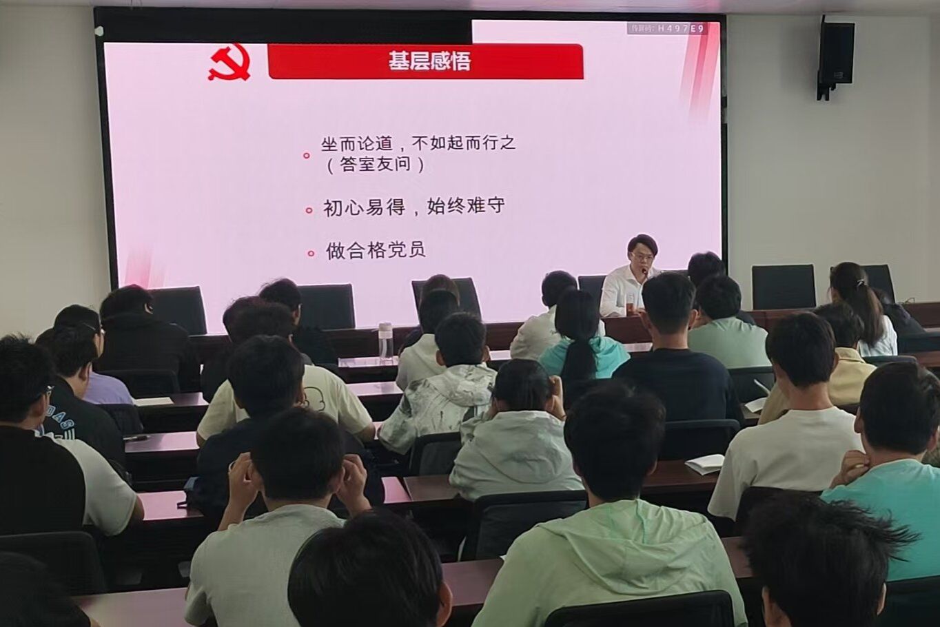为切实加强入党积极分子思想教育,充分发挥优秀校友的示范引领作用,5月24日上午,智能制造学院邀请优秀校友、曾任班级团支书和学院学生会负责人、2021届安徽省选调生白敬远重返母校,以“从基层党建工作视野学习领悟党的革命与自我革命的重大意义”为题,为学院全体第六十二期入党积极分子上了一堂生动的特色党课。