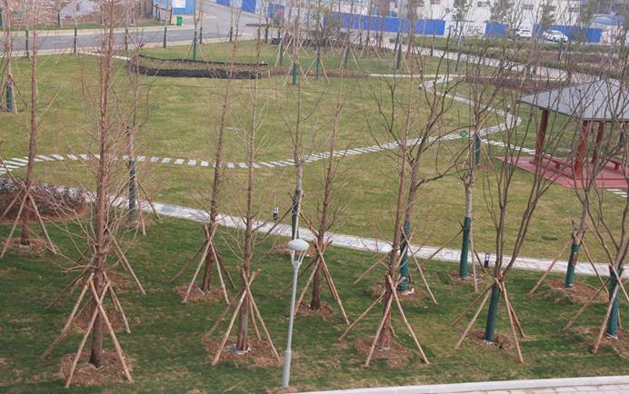 采用因地制宜,从实际出发的设计,满足消防、集散等功能要求;有重点、分主次打造景观,整体形象清晰,各区特色丰富,生态自然,可持续发展的设计;以绿化景观为主,竖向和水系的整理,进一步丰富景观层次。