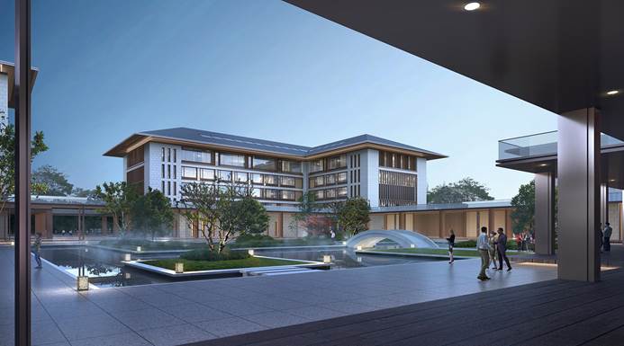 实验实训综合楼A位于校园用地东北部位,紧邻校园东入口,设计上取形于中国传统“书院”,用匠心独运的建筑手法,结合中国传统建筑与景观元素,打造亭台相济,楼阁相望的优美的景观。