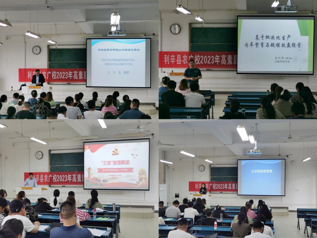 为了培养造就一批综合素质高、经营管理能力强、养殖技术过硬的黄淮山羊养殖专业家庭农场主,示范引领广大农民发展黄淮山羊养殖,发展地方优势农产品品牌,带动农民增收致富,促进农业扶贫产业转型升级、农村面貌的持续改变、农民素质不断提高,4月17日至19日,2023年利辛县高素质农民黄淮山羊养殖专业培训班在博鱼官方网页版_博鱼(中国)第一报告厅开班,继续教育学院党支部书记、院长杨维来,利辛县农广校副校长李明,利辛县农广校工作人员、村干部、养殖合作社成员共60余人参加了开班典礼。