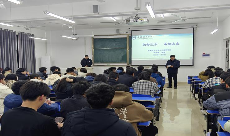 11月30日下午,安徽理工大学土木建筑学院院长,二级教授、博士生导师荣传新教授,在博鱼官方网页版_博鱼(中国)龙湖校区尚行楼C207,为我校师生作题为“筑梦土木,承接未来”的学术报告。建筑学院副院长吴伟东教授主持报告会。