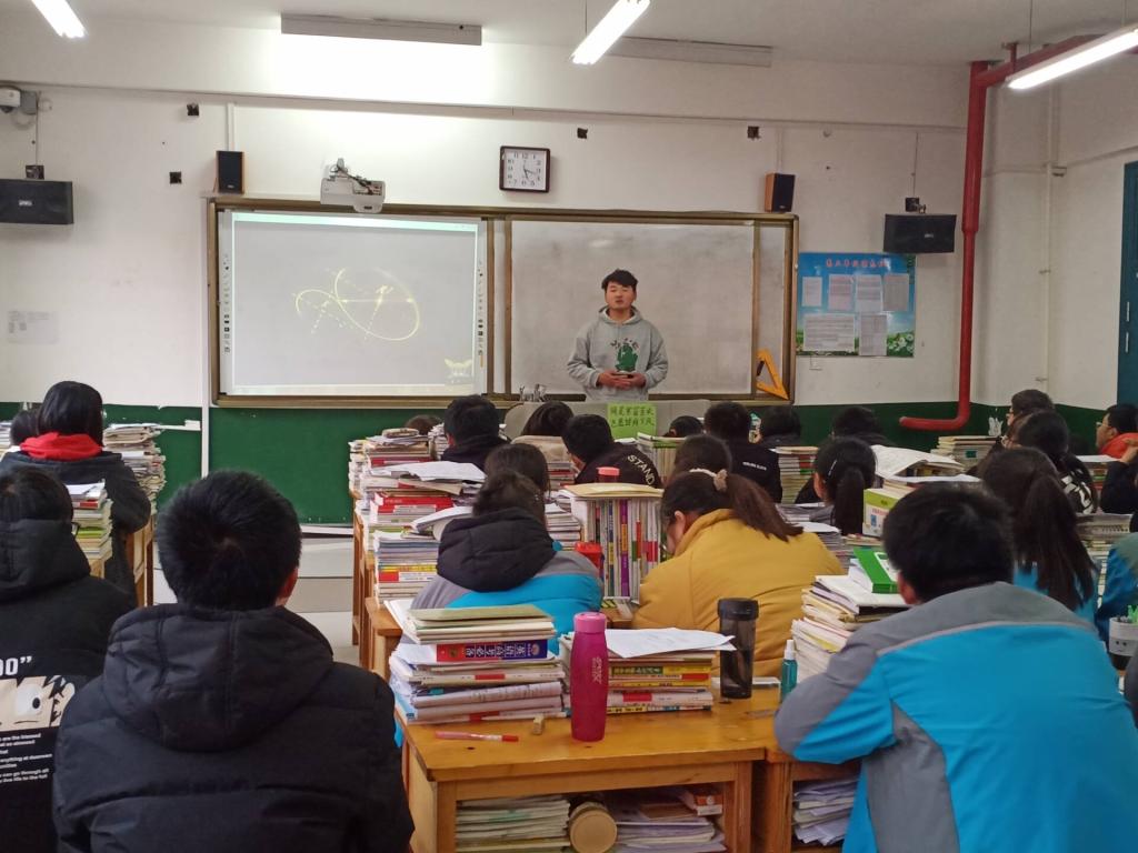 到达各自高中母校后,同学们看望了自己的高中老师,表达了对高中老师的感谢之情。他们从思想、学习、生活等方面向高中老师汇报了自身的成长变化,并获得了高中老师的肯定。在高中老师的帮助下,实践团队成员面向高中的学弟学妹们组织了一场专题宣讲会。