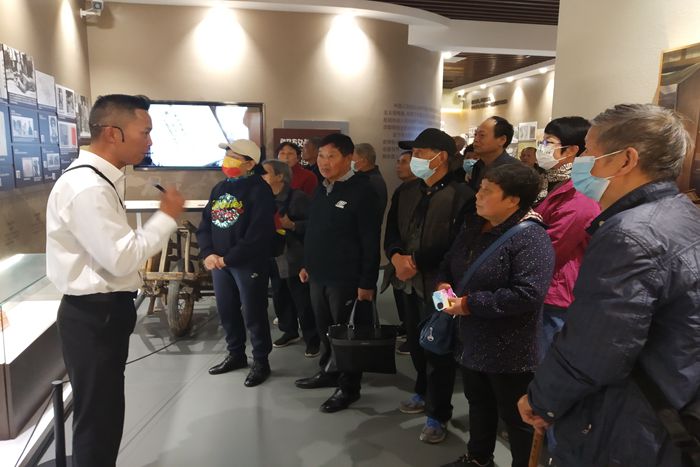 老同志们首先来到禾泉小镇“中国共产党历史学习馆”,这是在中国共产党建党101周年之际、党的二十大召开前夕,精心建设的一个党史学习馆,占地1000平方米。陈列内容主要包括中国共产党史、蚌埠革命史、共青团史、少先队史和统一战线史五个部分,按照“历史主轴+重要细节+精彩故事+实物展陈”的设计思路,内容上实现“点线面”立体结合,形式上达到“图文光电”多媒体交互,全面呈现中国共产党百年奋斗历史。