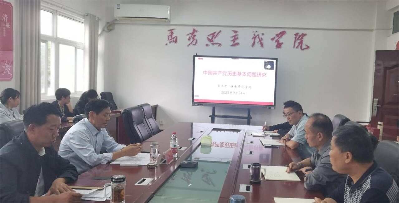 9月24日下午,学院在会议室举办第十期“21世纪马克思主义大讲堂”。淮南师范学院马克思主义学院教授、安徽省中共党史学会副会长、安徽省教学名师吴玉才应邀作《中国共产党历史若干问题研究》的专题报告。报告会由马克思主义学院党总支副书记、院长张德化主持,全体师生参加。