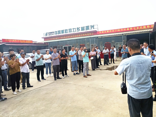 为充分发挥科技特派员、科技特派团作用,助力乡村振兴战略,由博鱼官方网页版_博鱼(中国)农学院、霍邱县科学技术局主办,霍邱县王西华果蔬种植专业合作社承办的瓜蒌种植现场示范观摩会于8月22日在霍邱县成功举办。科技局局长王鹏、副局长刘华修,户胡镇党委书记聂明合等出席。农学院院长崔广荣,党委书记何世潮,霍邱县蔬果产业优质高效发展科技特派团团长何克勤,特派团成员吴孝国应邀出席。