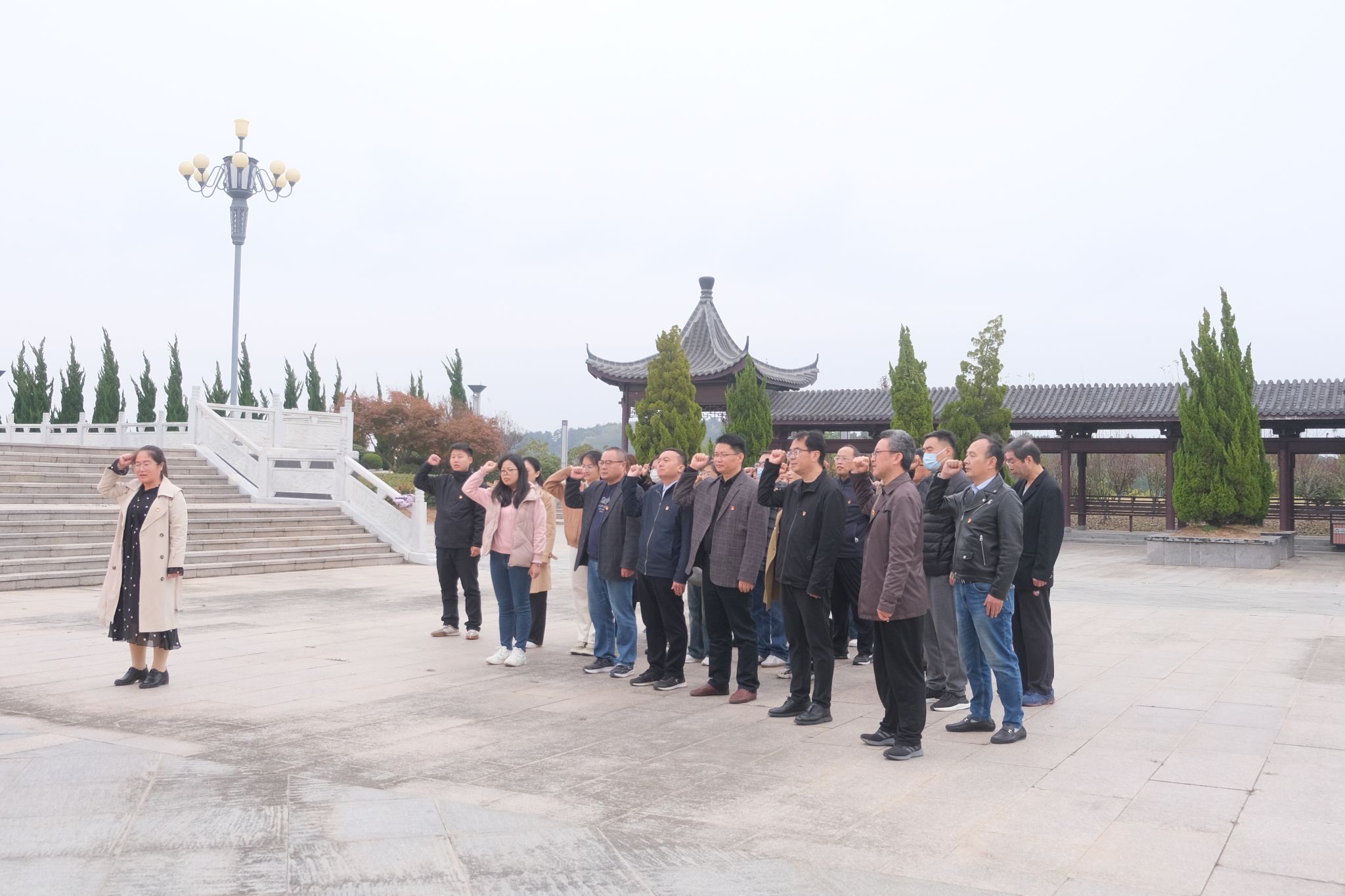 根据人文学院2024年党政工作要点和创建全省高校党建工作“标杆院系”总体安排,为持续推动党史学习教育走深走实,赓续红色血脉、传承革命基因,锤炼坚强党性、汲取奋进伟力,11月9日,人文学院党委组织全体教工党员赴爱国主义教育基地——定远县藕塘烈士陵园,开展党史学习教育主题党日活动。
