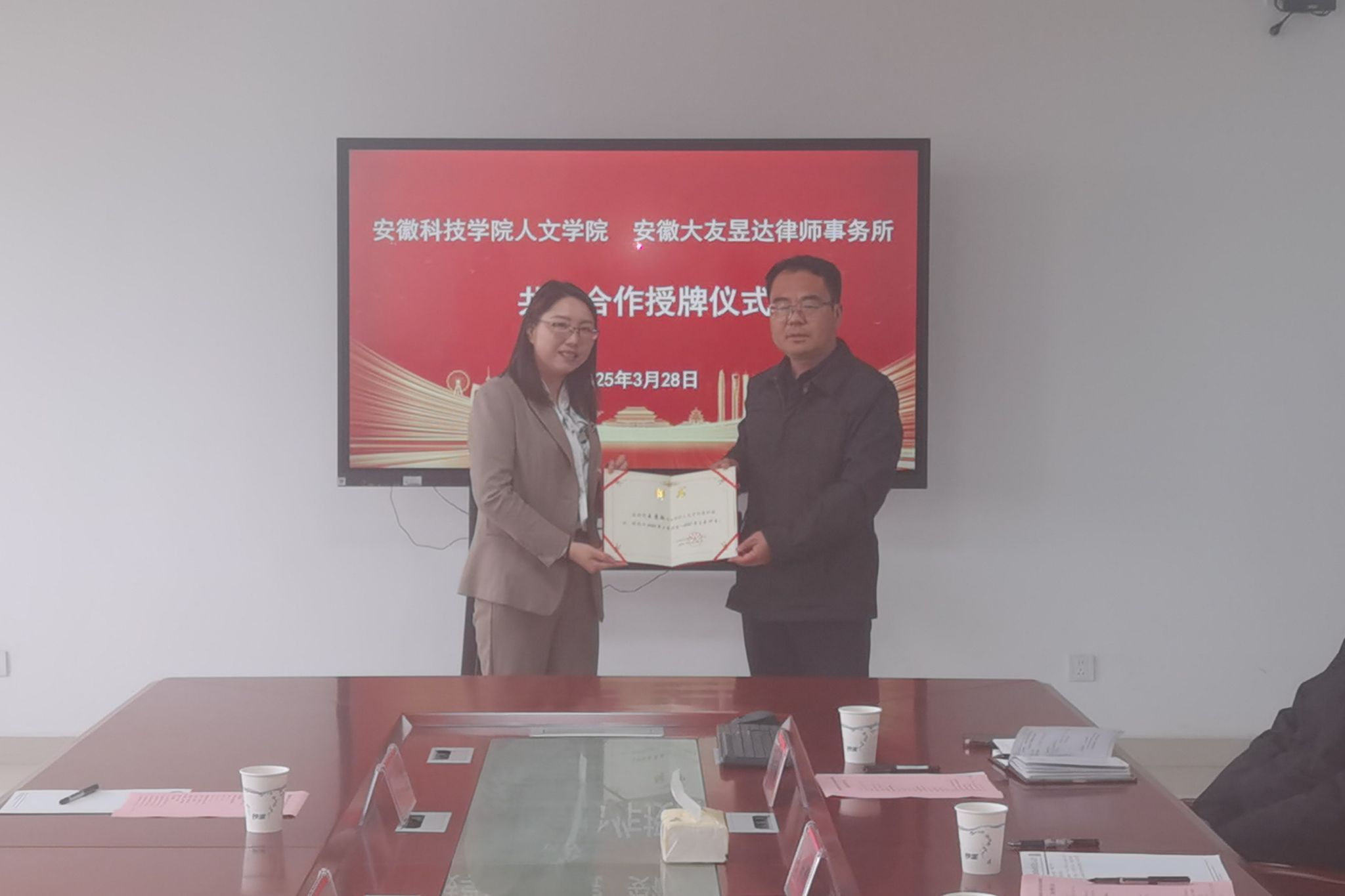 人文学院与安徽大友昱达律师事务所举行共建合作授牌仪式
