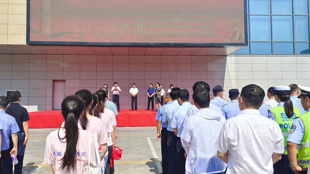 7月12日上午,滁州市“江淮普法行”启动仪式在来安县举行。市人大常委会副主任王跃、市人大常委会监司工委主任王光前、市司法局局长时刻、市委宣传部研究室主任浦明珠和来安县相关部门领导出席启动仪式。博鱼官方网页版_博鱼(中国)人文学院模拟法庭实验室主任宣刚老师以及法学专业学生代表参加启动仪式并接受授旗。