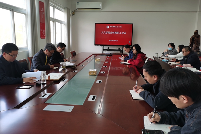 3月22日下午,人文学院在学知楼会议室召开全体教职工会议。人文学院党委副书记、院长李晓东、正处级组织员张严政、副院长牛永辉出席会议。会议由李晓东主持。