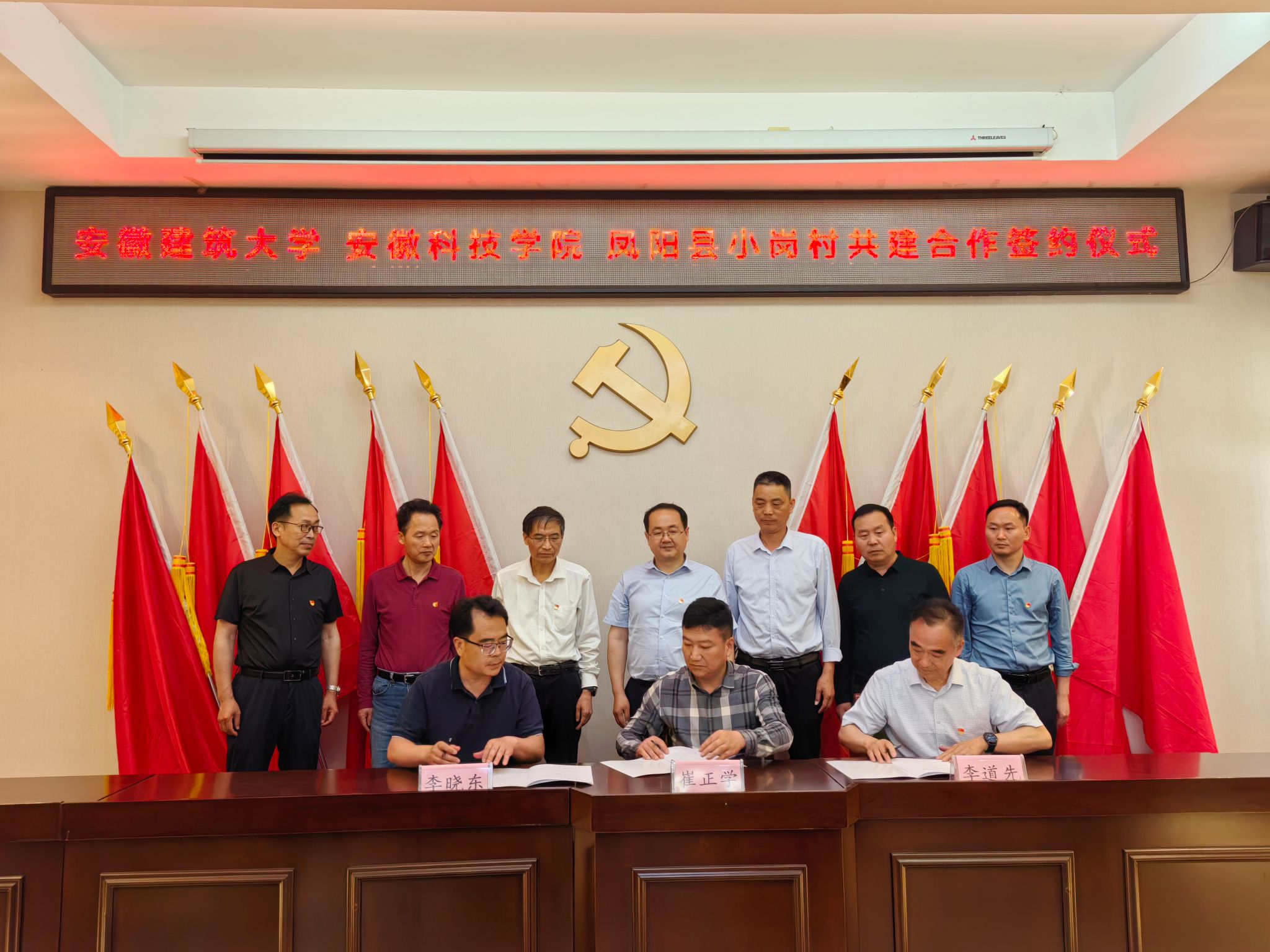 在签约授牌仪式上,三方还就如何推动党纪学习教育走深走实、助力小岗村特色产业高质量发展、创新高校大思政课建设、强化新时代高校劳动教育、深化大学生暑期社会实践活动、传承和发展地方特色文化等问题展开深入探讨,并就持续推进校地党建共建、创新协同育人举措等方面达成共识。