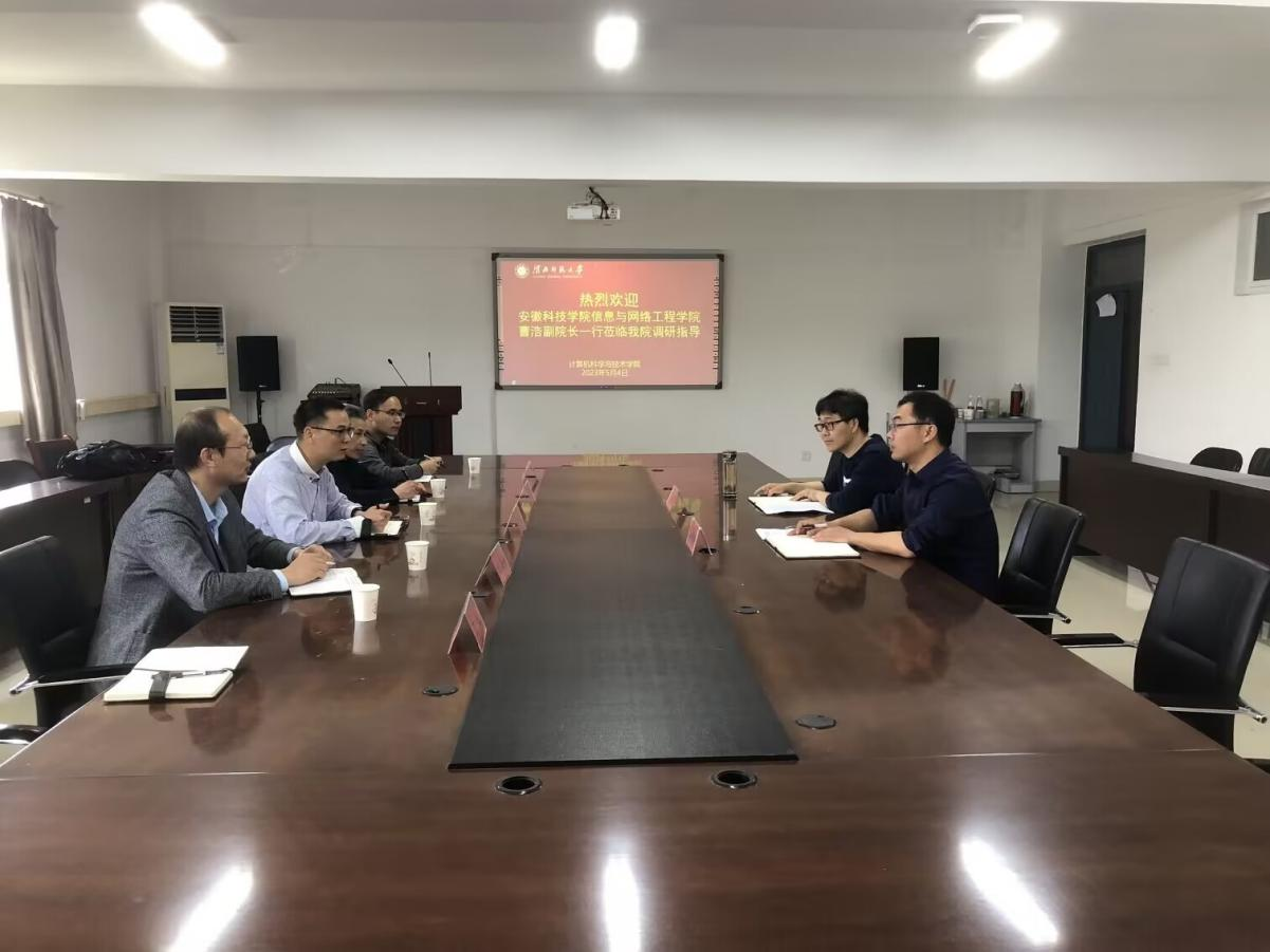 5月4日,信息与网络工程学院副院长曹浩、计算机系主任段汉根、专业认证负责人仇海全、专业认证骨干教师王珏和李宗智一行5人赴淮北师范大学计算机科学与技术学院开展工程教育专业认证与一流专业建设工作调研,受到学院副院长肖建于、副院长葛方振、院长助理江明明的热情接待。