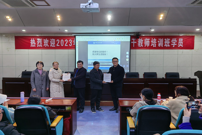 3月21日,外国语学院承办的2023年明光市初中英语骨干教师培训工作顺利结束。下午四点,在学校图书馆一楼报告厅举行了结业仪式。外国语学院党政领导出席结业仪式,仪式由外国语学院院长刘萍主持,学院党委书记蔡为青、副院长洪民为参训教师颁发结业证书。