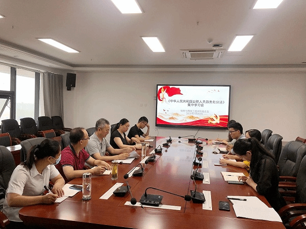 7月22日上午,信息与网络工程学院党总支在龙湖校区西副楼417会议室召开理论学习中心组集中学习会,组织学习《中华人民共和国公职人员政务处分法》(以下简称《政务处分法》),中心组成员、科级干部、教务员和辅导员参加学习,会议由党总支书记王振其主持。