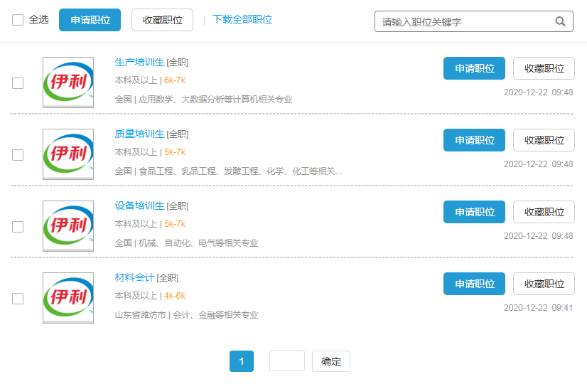 潍坊伊利乳业有限责任公司2021届招聘简章