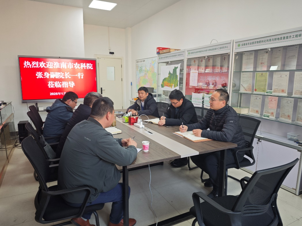 2025年1月17日,淮南市农业科学院院长张身嗣一行3人来资源与环境学院进行调研交流。安徽省“两利用”产业技术体系首席专家汪建飞教授、岗位专家、资源与环境学院副院长李飞跃教授,孟凡彬副教授参加会议。