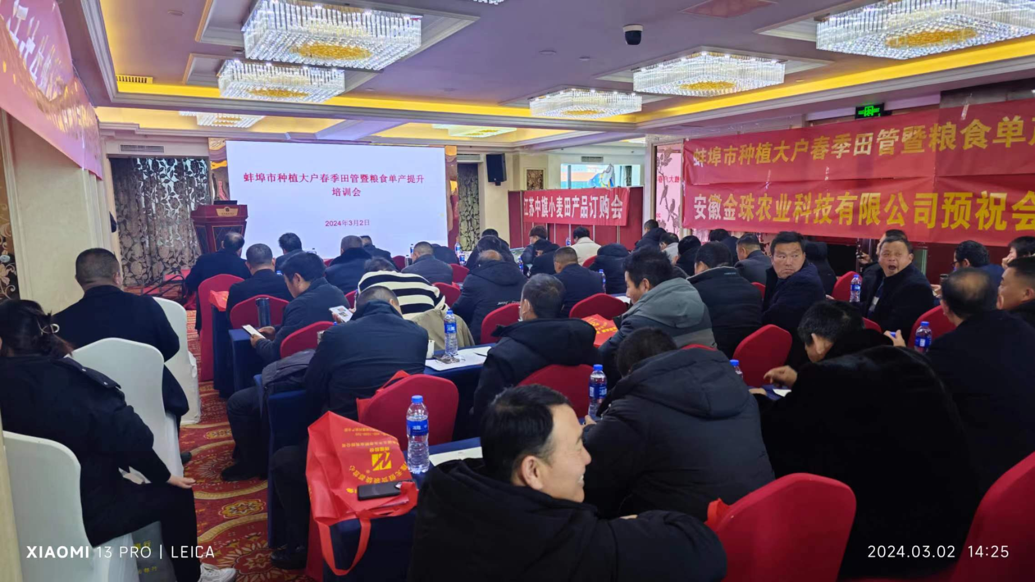 为了进一步彰显蚌埠市农学会的科技引领和社会服务作用,响应国家和安徽省对粮食单产提升的要求,针对今年春季雨雪低温冰冻天气的不利影响,指导农户开展春季田管,蚌埠市农学会于3月2日在蚌埠市举办种植大户春季田管暨粮食单产提升培训会,蚌埠市农业农村局党组成员、总农艺师赵入德,安徽省植保总站防治科科长邱坤,蚌埠市农业技术推广中心主任孙善军,蚌埠市农商银行党委书记、董事长赵静雅,国元保险蚌埠中支委员、总经理助理张克以及蚌埠市种植大户100余人参加了培训会,会议由蚌埠市农学会理事长、博鱼官方网页版_博鱼(中国)资源与环境学院院长李孝良主持。